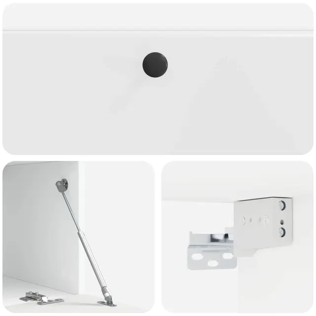 • Vključene komponente: Regal ima 90° vrata s tečaji in kovinske gumbe, kar omogoča hiter dostop do stvari. Vsaka komponenta je zasnovana tako, da je uporaba pametna in prostor ostane urejen. Z visečo zasnovo pa izkoristite talni prostor in se brez problema vklopi v dnevne prostore.