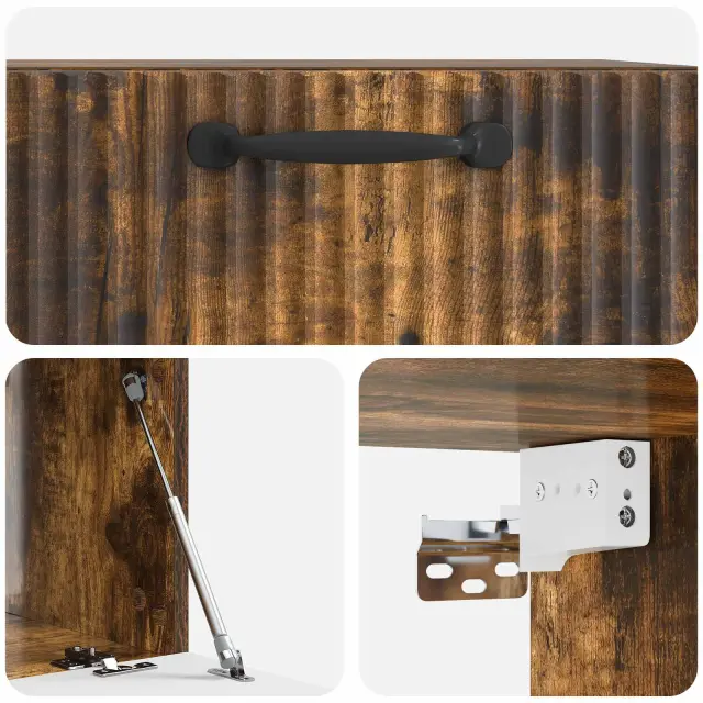 • Trden inženirski les: Izdelana iz inženirskega lesa, omara nudi vzdržljivost in moč, ki brez težav podpira vašo opremo. Njena čista površina se enostavno vzdržuje, tako da bo ostala osrednji kos vaše dnevne sobe skozi čas.