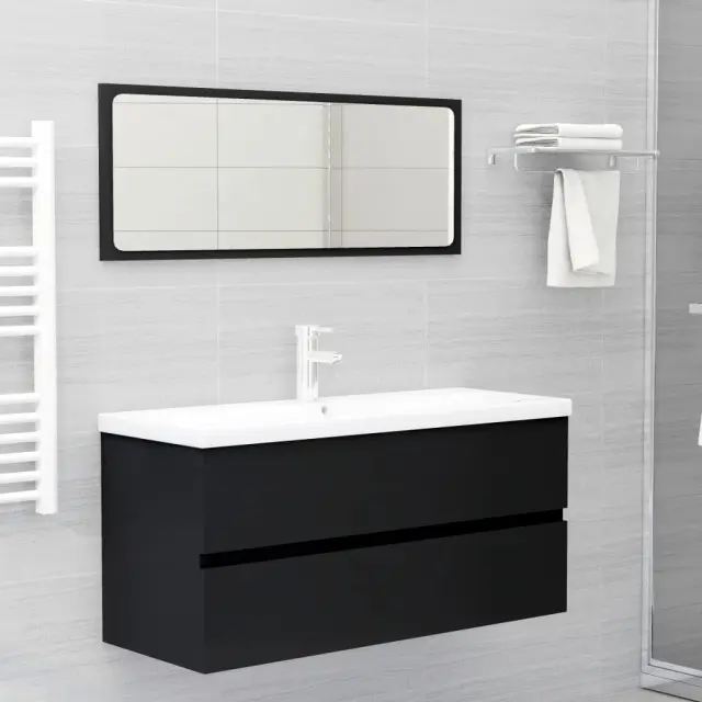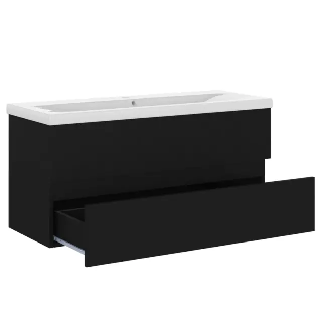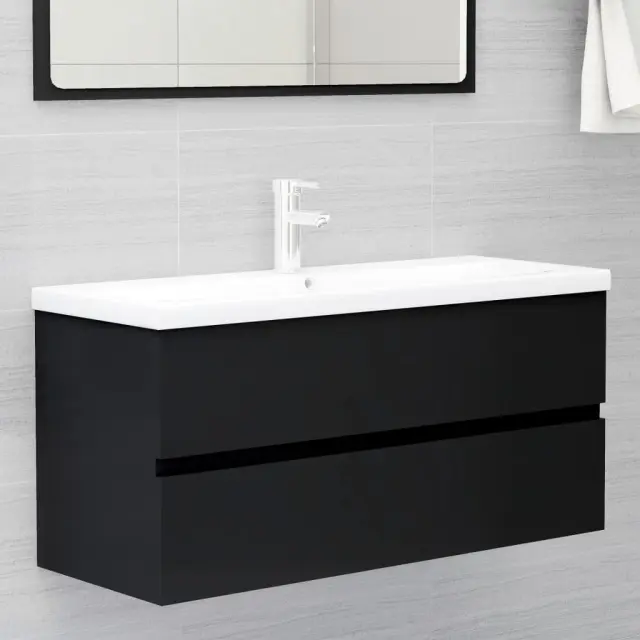 vidaXL Omarica za umivalnik z vgradnim umivalnikom črna inženirski les