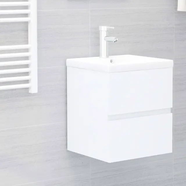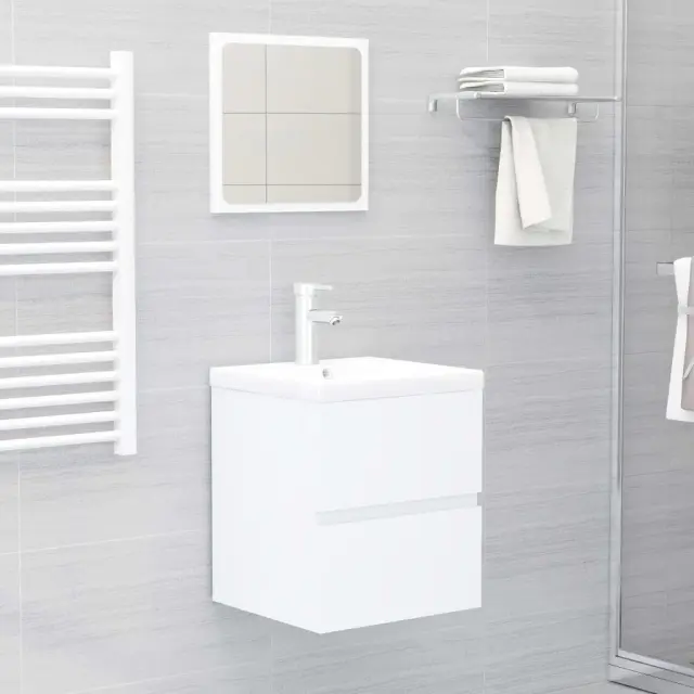 vidaXL Omarica za umivalnik z vgradnim umivalnikom bel inženirski les