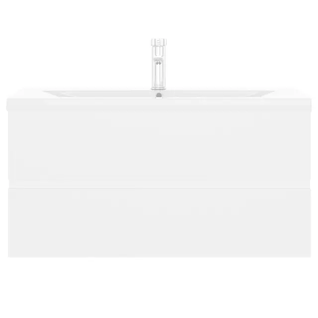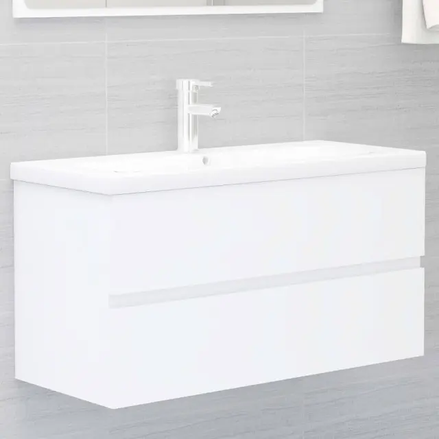 vidaXL Omarica za umivalnik z vgradnim umivalnikom bela iverna plošča