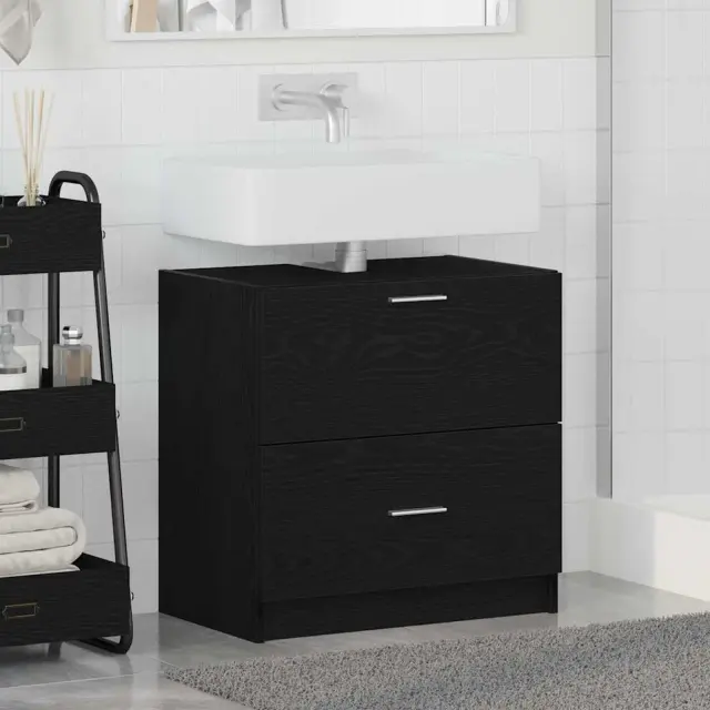 vidaXL Omarica za umivalnik s predalom Črna Orehovina 59 x 37 x 59 cm