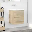 vidaXL Omarica za umivalnik s predalom Sonoma hrast 38,5 x 41 x 48 cm