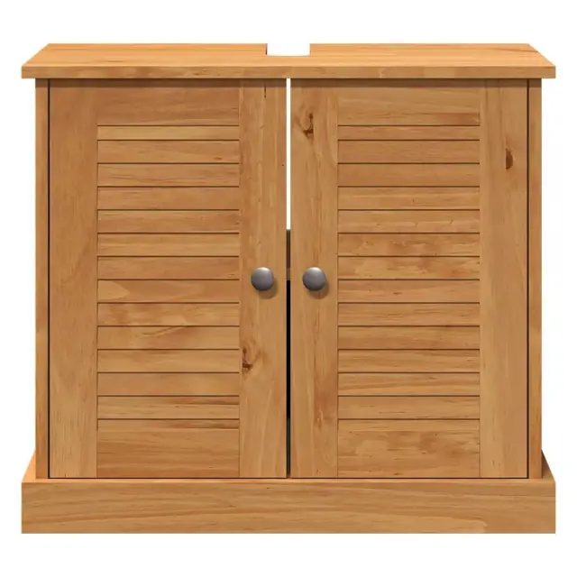 Ta lepo izdelan kabinett pod umivalnikom je edinstven kos, ki popolnoma dopolnjuje vašo kopalnico s svojim vintage šarmom. Zasnovan je, da shranjuje nujne potrebščine in pri tem ohranja prostor čist in stiliziran. Klasična pravokotna oblika prinaša estetiko preteklosti in omogoča funkcionalno shranjevanje pod umivalnikom. Trdna konstrukcija iz borovine prinaša rustikalno lepoto narave v vaš dom, ustvarja toplo in prijetno vzdušje.