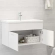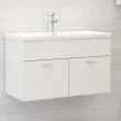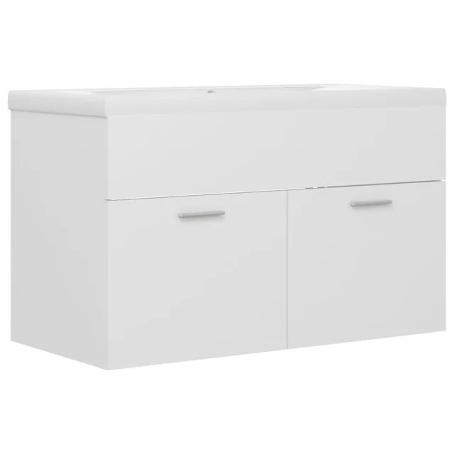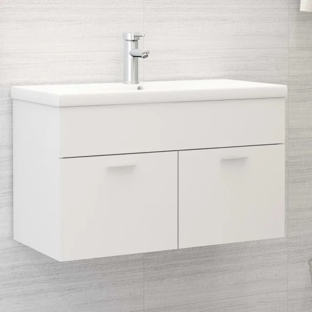 vidaXL Omarica za umivalnik z vgradnim umivalnikom bela inženirski les