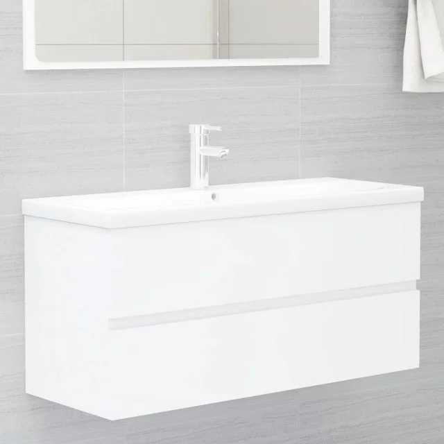 vidaXL Omarica za umivalnik z vgradnim umivalnikom bela inženirski les