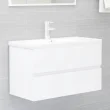 vidaXL Omarica za umivalnik z vgradnim umivalnikom bela iverna plošča