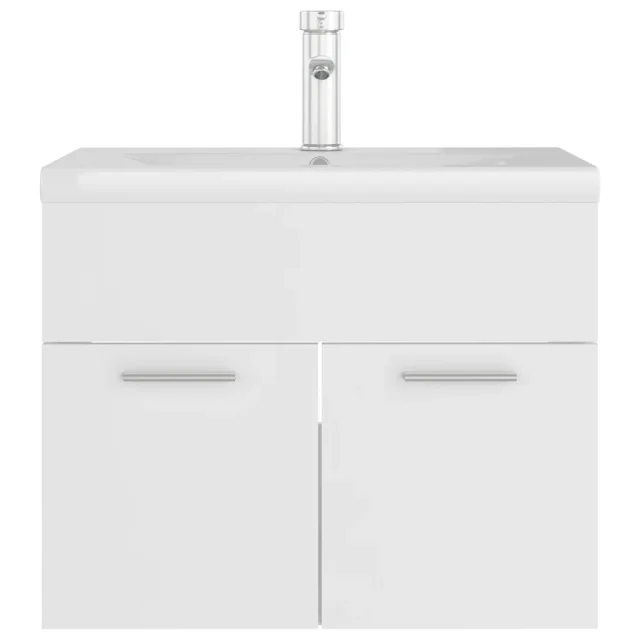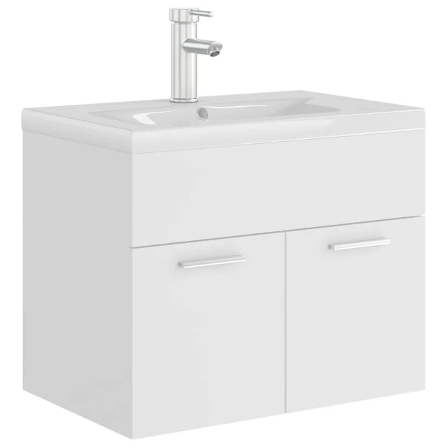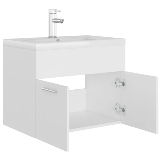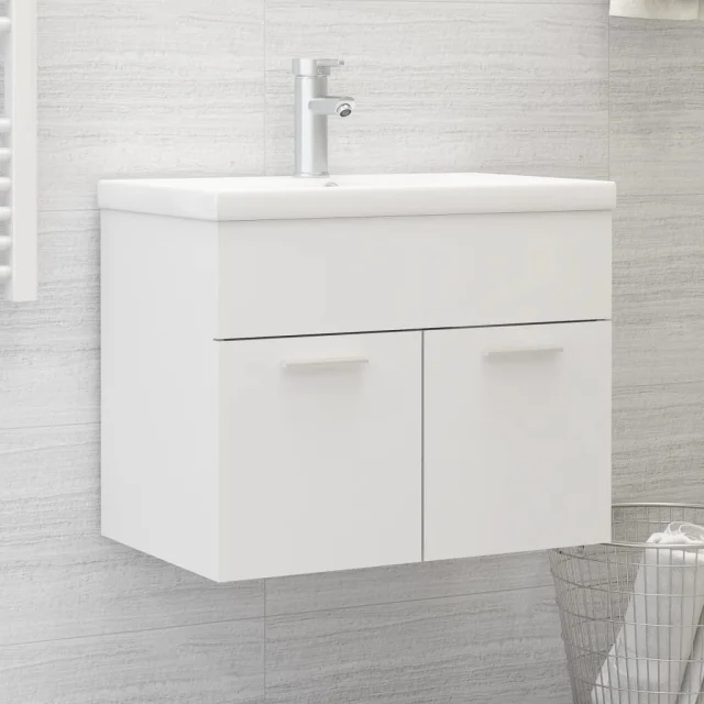 vidaXL Omarica za umivalnik z vgradnim umivalnikom bela iverna plošča