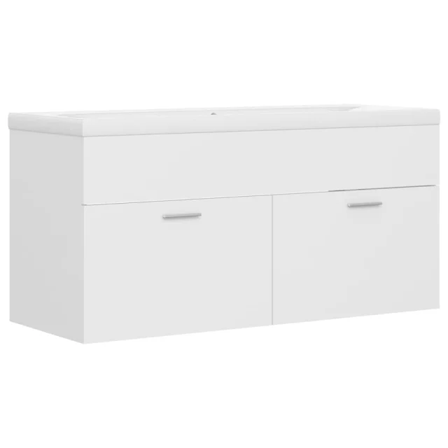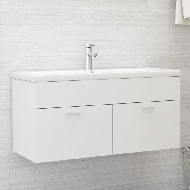 vidaXL Omarica za umivalnik z vgradnim umivalnikom bela iverna plošča