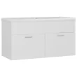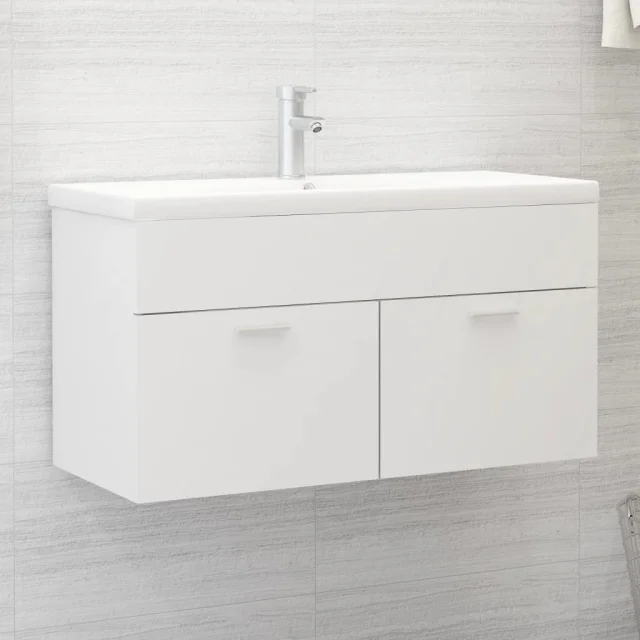 vidaXL Omarica za umivalnik z vgradnim umivalnikom bela iverna plošča