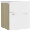 vidaXL Omarica za umivalnik z vgradnim umivalnikom bela sonoma hrast