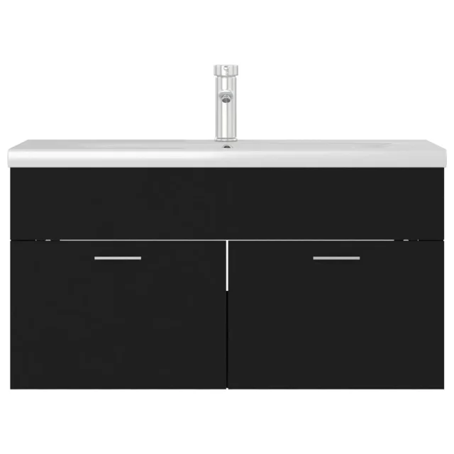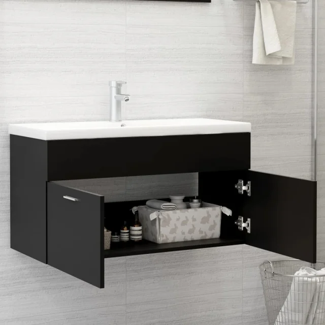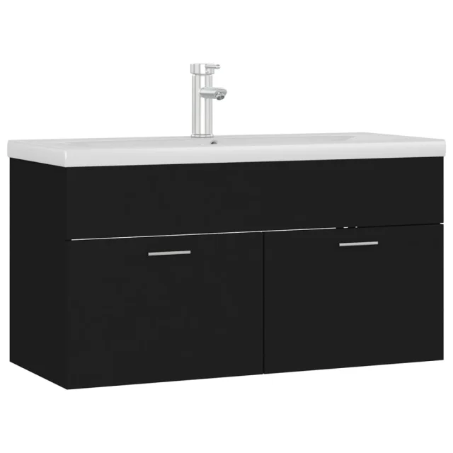vidaXL Omarica za umivalnik z vgradnim umivalnikom črna inženirski les