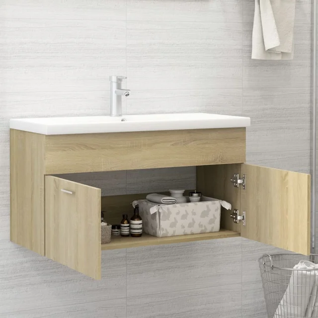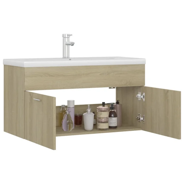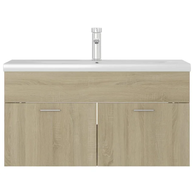 vidaXL Omarica za umivalnik z vgradnim umivalnikom sonoma hrast