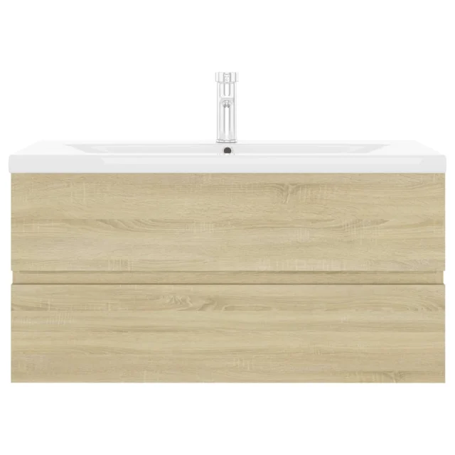 vidaXL Omarica za umivalnik z vgradnim umivalnikom sonoma hrast