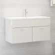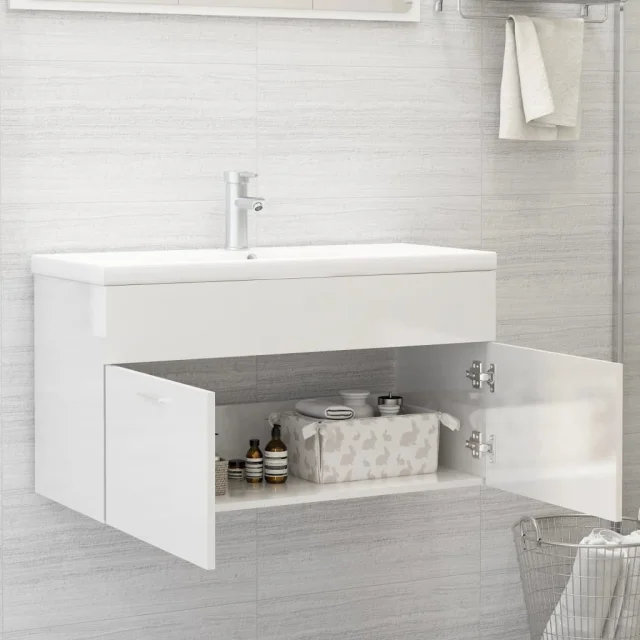 vidaXL Omarica za umivalnik z vgradnim umivalnikom visok sijaj bela