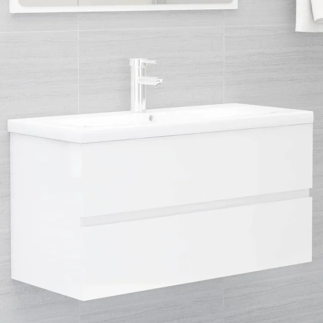 vidaXL Omarica za umivalnik z vgradnim umivalnikom visok sijaj bela