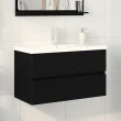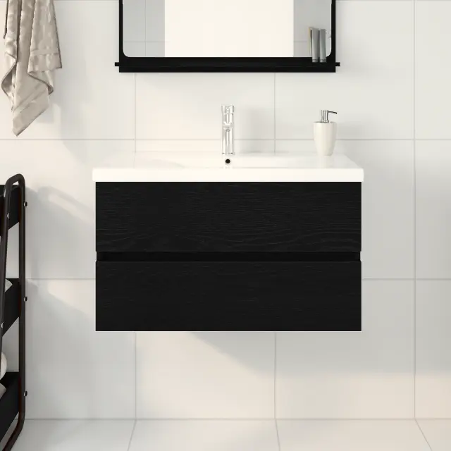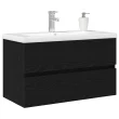vidaXL omarica za umivalnik z vgrajenim umivalnikom črni hrast inženirski les