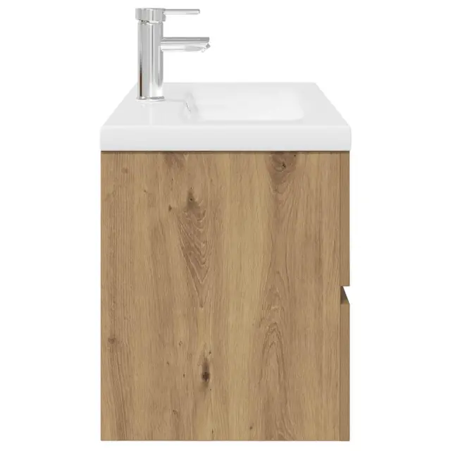 vidaXL omarica za umivalnik z vgrajenim umivalnikom pipo Artisan Oak