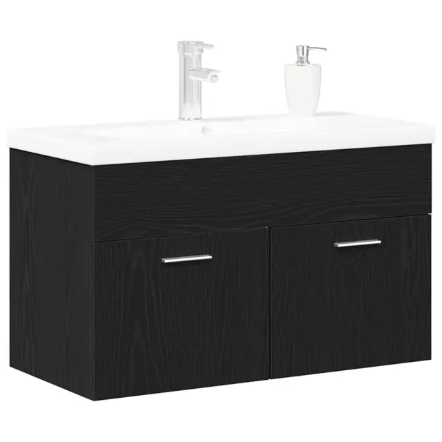 vidaXL Omarica za umivalnik z vrati Črna Orehovina 90 x 38.5 x 46 cm