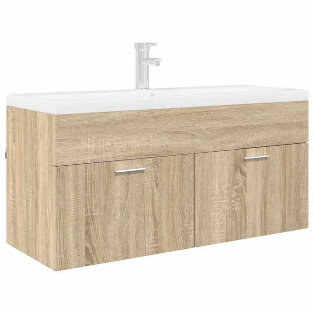 vidaXL Omarica za umivalnik z vrati Sonoma hrast Konstruiran les