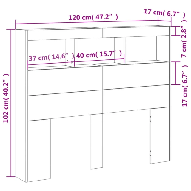 vidaXL Omarica za vzglavje postelje LED siva sonoma 120x17x102 cm
