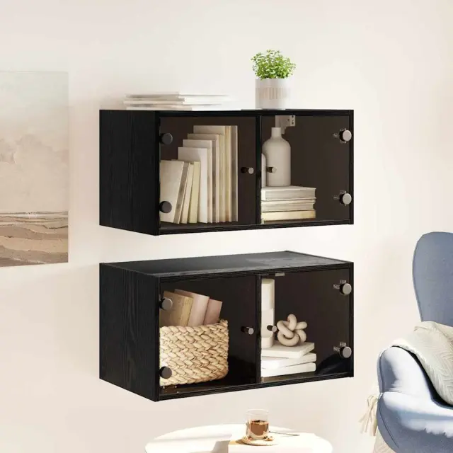 vidaXL Omarice na steni 2 pcs Črna Orehovina 68 x 37 x 35 cm