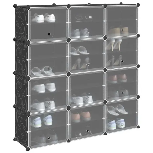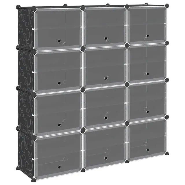 vidaXL Organizator za shranjevanje kock z 12 kockami in vrati Black PP