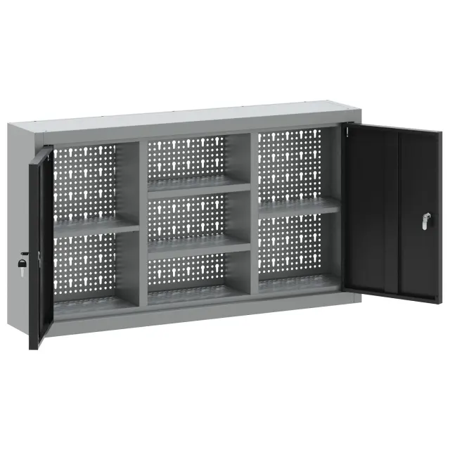 Ta stenska orodna omara je idealna za vse, ki imajo radi red. Doda eleganten pridih vaši delavnici ali ustvarjalni sobi. Siva in črna zasnova se lepo ujema z različnimi slogi, njena kompaktna velikost pa je odlična za manjša mesta. Super je za shranjevanje in prikaz vaših orodij ter potrebščin.