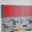 Ta stenska omara za orodje je praktičen in eleganten način za organizacijo tvojih orodij in drobnarij. S sodobno sivo in rdečo zasnovo ne samo, da deluje funkcionalno, ampak tudi polepša tvoje delovno okolje, saj je idealna za ustvarjalne prostore, delavnice ali balkon.