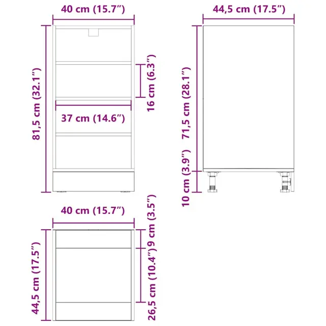 • Splošne dimenzije: 40 x 44,5 x 81,5 cm (D x Š x V)