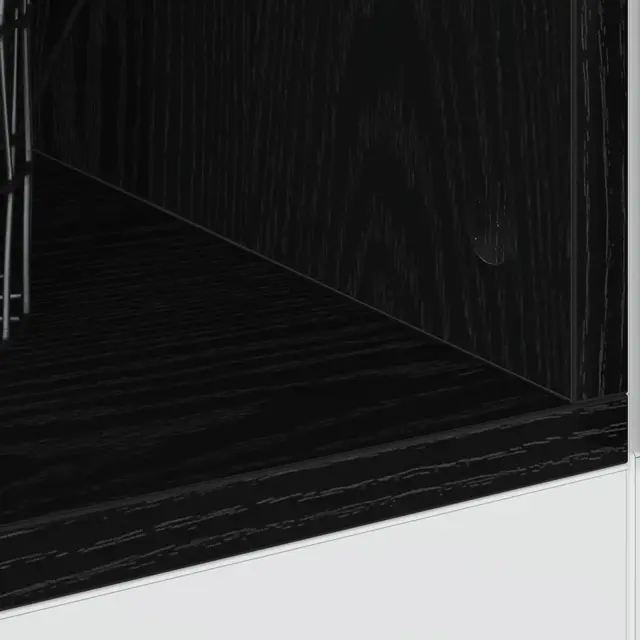 • Vključene komponente: Omara se ponaša z privlačnim hrbtom, kar zviša njeno primernost za različne kuhinjske ureditve. Enotna uporaba inženirskega lesa po celotni konstrukciji pripomore k skladni estetiki, hkrati pa zagotavlja robustnost in zanesljivost.