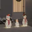 vidaXL Osvetljena družina snežakov 3 pcs Toplo bela Poliester