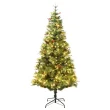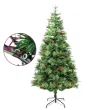 vidaXL Osvetljena novoletna jelka s storži zelena 225 cm PVC in PE