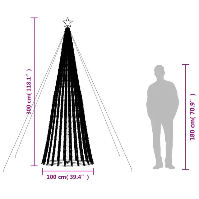 vidaXL Osvetljena novoletna jelka stožec 688 LED barvita 300 cm