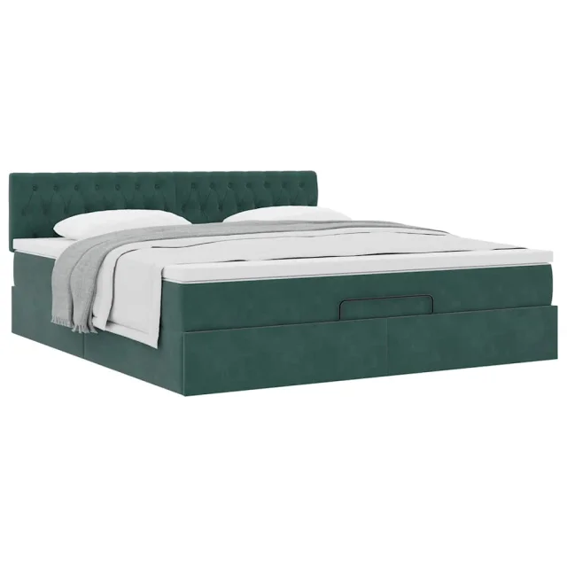 vidaXL Otomanska postelja z ležiščem Temno zelena 160x200 cm Žamet