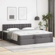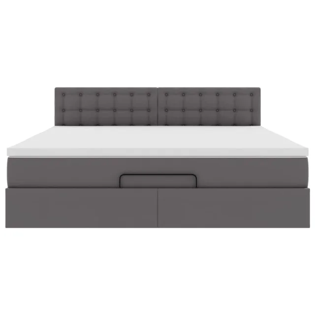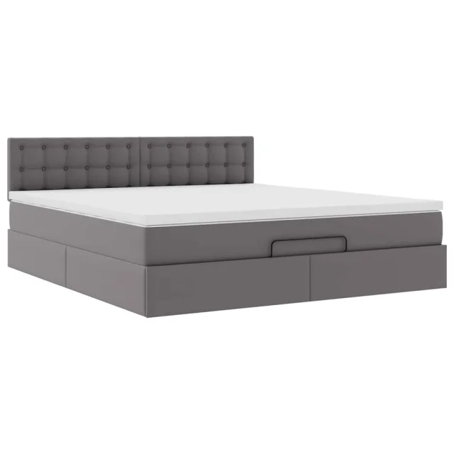 vidaXL Otomanska postelja z vzmetnicami & LED siv 160x200cm um. usnje