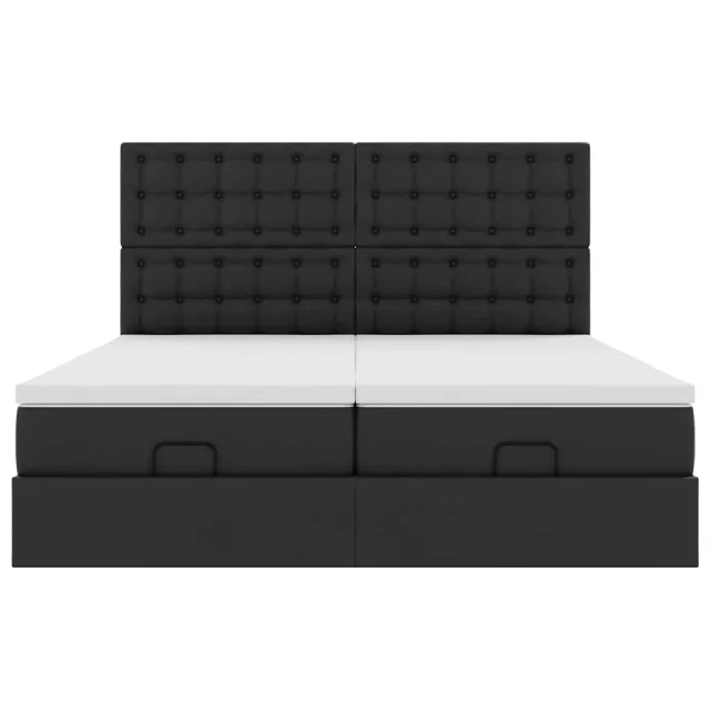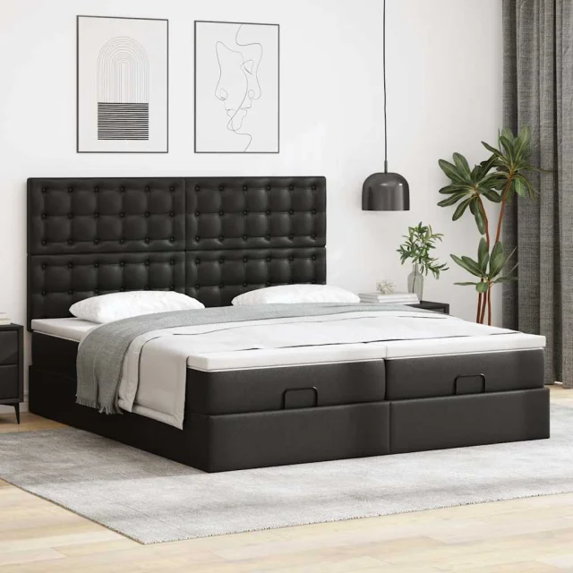 vidaXL Otomanska postelja z vzmetnicami & LEDs črn 180x200cm um. usnje