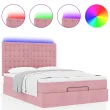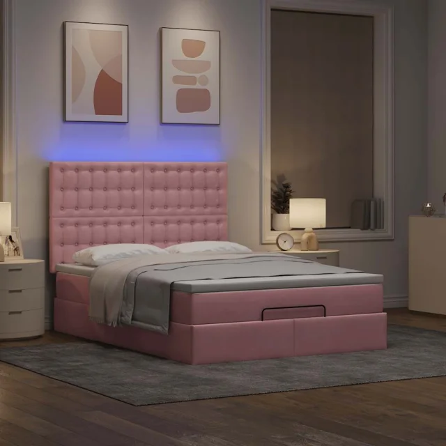 vidaXL Otomanska postelja z vzmetnicami & LEDs roza 140x200cm žamet
