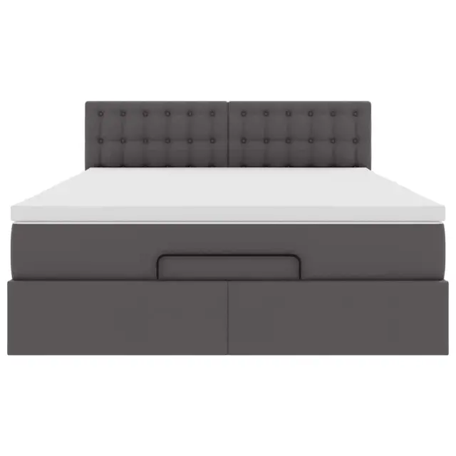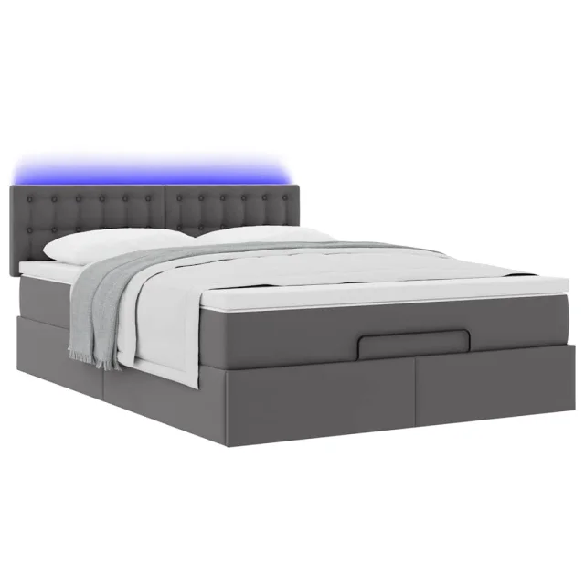 vidaXL Otomanska postelja z vzmetnicami &LEDs siv 140x200cm um. usnje