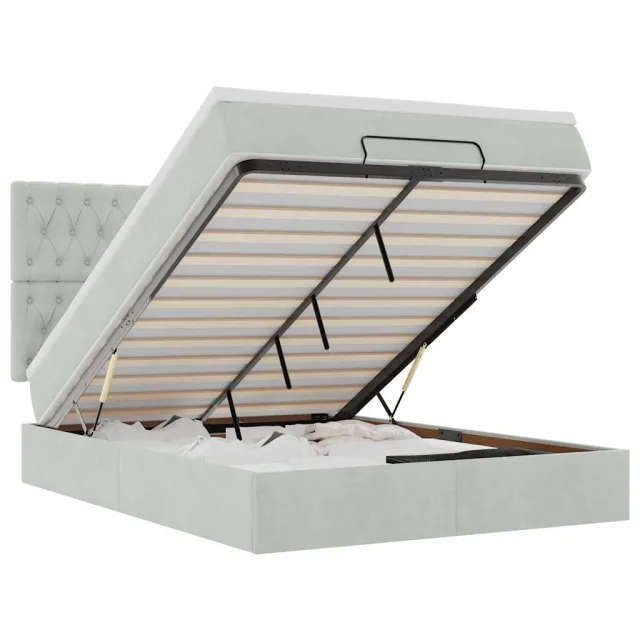 • Veliko prostora za shranjevanje pod posteljo: Zahvaljujoč hidravličnemu dvižnemu mehanizmu je pod posteljnim okvirjem na voljo veliko prostora za shranjevanje pod posteljo, kar povečuje prostor, ne da bi zavzemal dodatno talno površino. S preprostim potegom ročaja se podnožje z letvami gladko dvigne, tako da lahko hitro in brez napora poberete svoje predmete.
