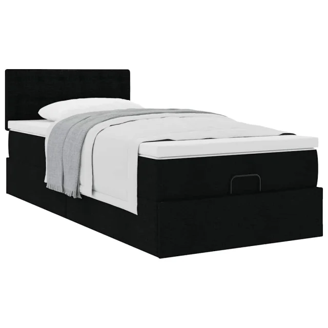 vidaXL Otomanska postelja z vzmetnico črn 100x200 cm blago