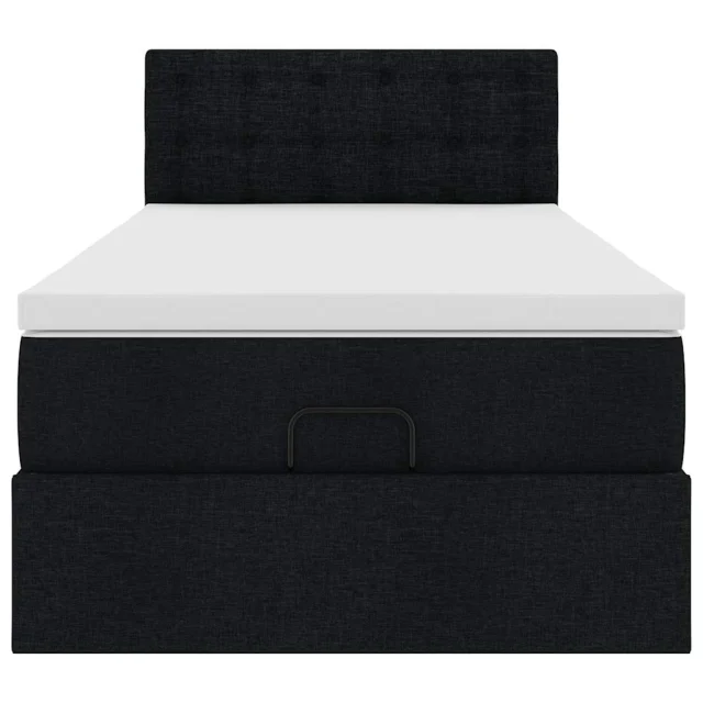 vidaXL Otomanska postelja z vzmetnico črn 100x200 cm blago