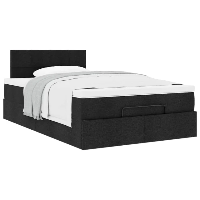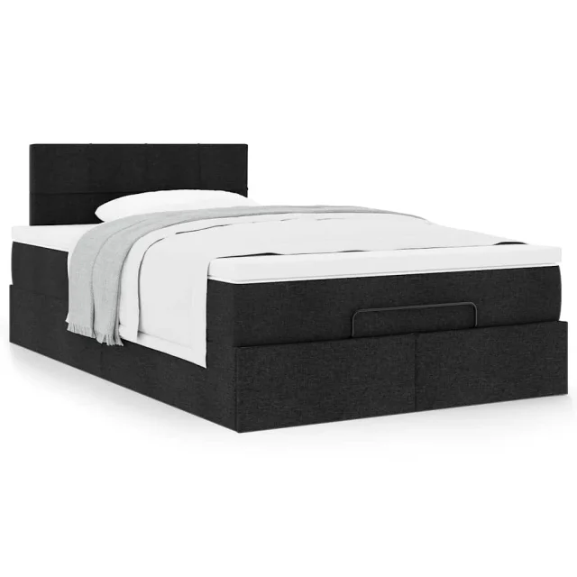 vidaXL Otomanska postelja z vzmetnico črn 120x190 cm blago