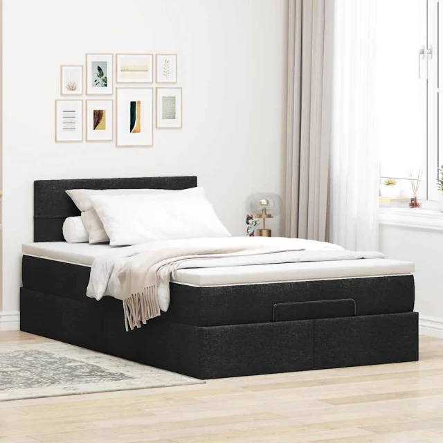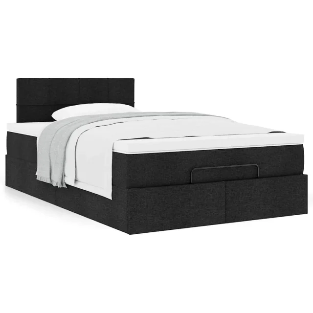 vidaXL Otomanska postelja z vzmetnico črn 120x200 cm blago
