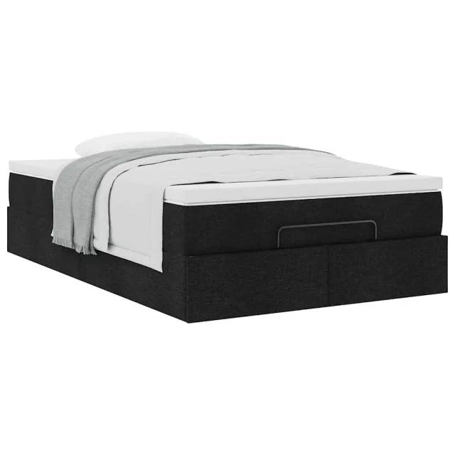 vidaXL Otomanska postelja z vzmetnico črn 120x200 cm blago