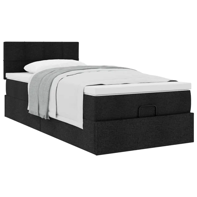 vidaXL Otomanska postelja z vzmetnico črn 90x200 cm blago