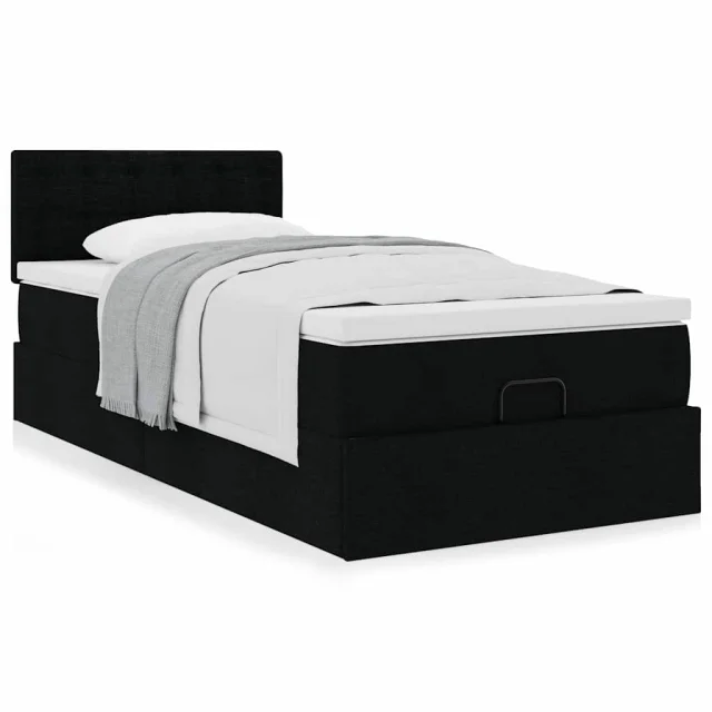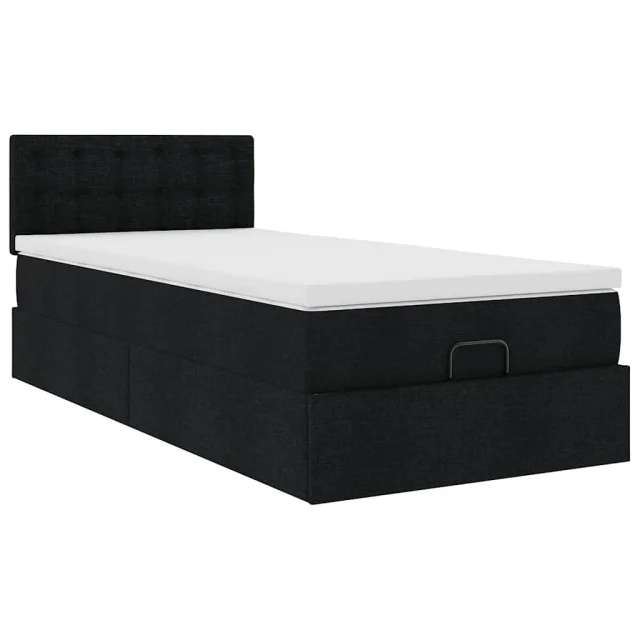 vidaXL Otomanska postelja z vzmetnico črn 90x200 cm blago