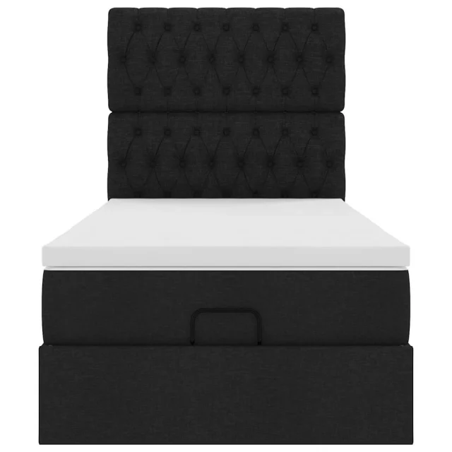 vidaXL Otomanska postelja z vzmetnico črn 90x200 cm blago