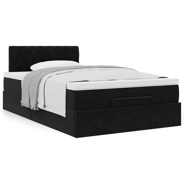 vidaXL Otomanska postelja z vzmetnico črna 120x190 cm žamet