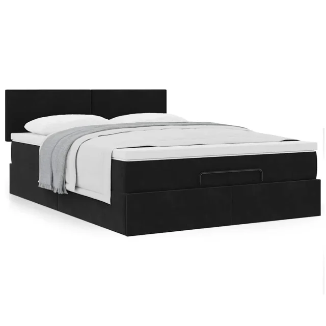 vidaXL Otomanska postelja z vzmetnico črna 140x190 cm žamet